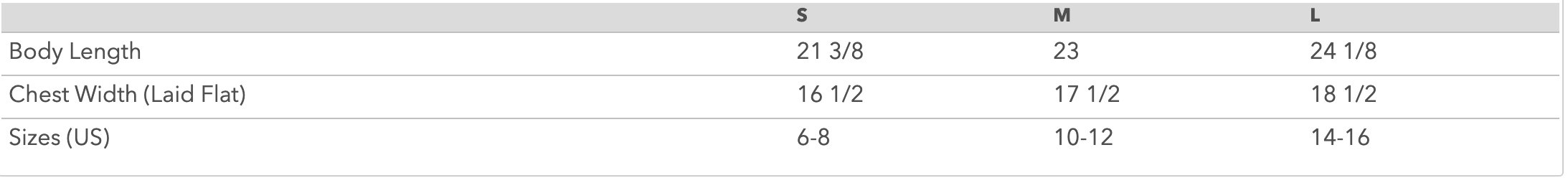 Youth Size Chart: